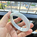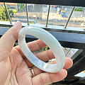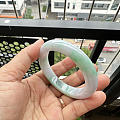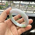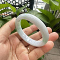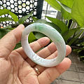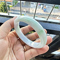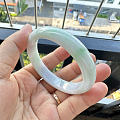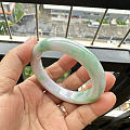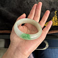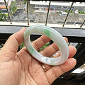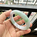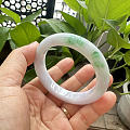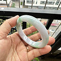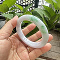 52.1正圈满圈豆绿底色飘色花翡翠手镯
